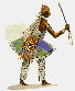 der Götterbote, ist der Mittler zwischen den Orixás, den Eguns, den Geistern der Toten, und den Menschen. Er ist auch der Wächter der Tempel, der Häuser und der Städte. Ihm müssen auch zu Beginn aller Zeremonien als erstem Opfergaben gebracht werden. Jedes Fest im Candomblé beginnt mit einer Zeremonie für ihn, damit das Fest harmonisch abläuft. Denn der Hüter der Kreuzungen, der dafür sorgt, daß die Wege zwischen den Welten geöffnet sind, ist leicht zu beleidigen und muß milde gestimmt erden, damit er göttliche Botschaften überbringt. Seine Farben sind Schwarz und Rot, sein Tag der Montag. Er wird mit den sieben Schwertern oder einem Dreispitz dargestellt. Exú ist ein gerissener Kerl auf der Seite der Recht- und Machtlosen, der sich für seine Dienste bezahlen läßt. Er wird mit dem Teufel der Christen assoziiert, aber das ist nicht ganz richtig, denn er arbeitet auch für das Gute und seine Figur ist weit vielschichtiger als die des Teufels. |